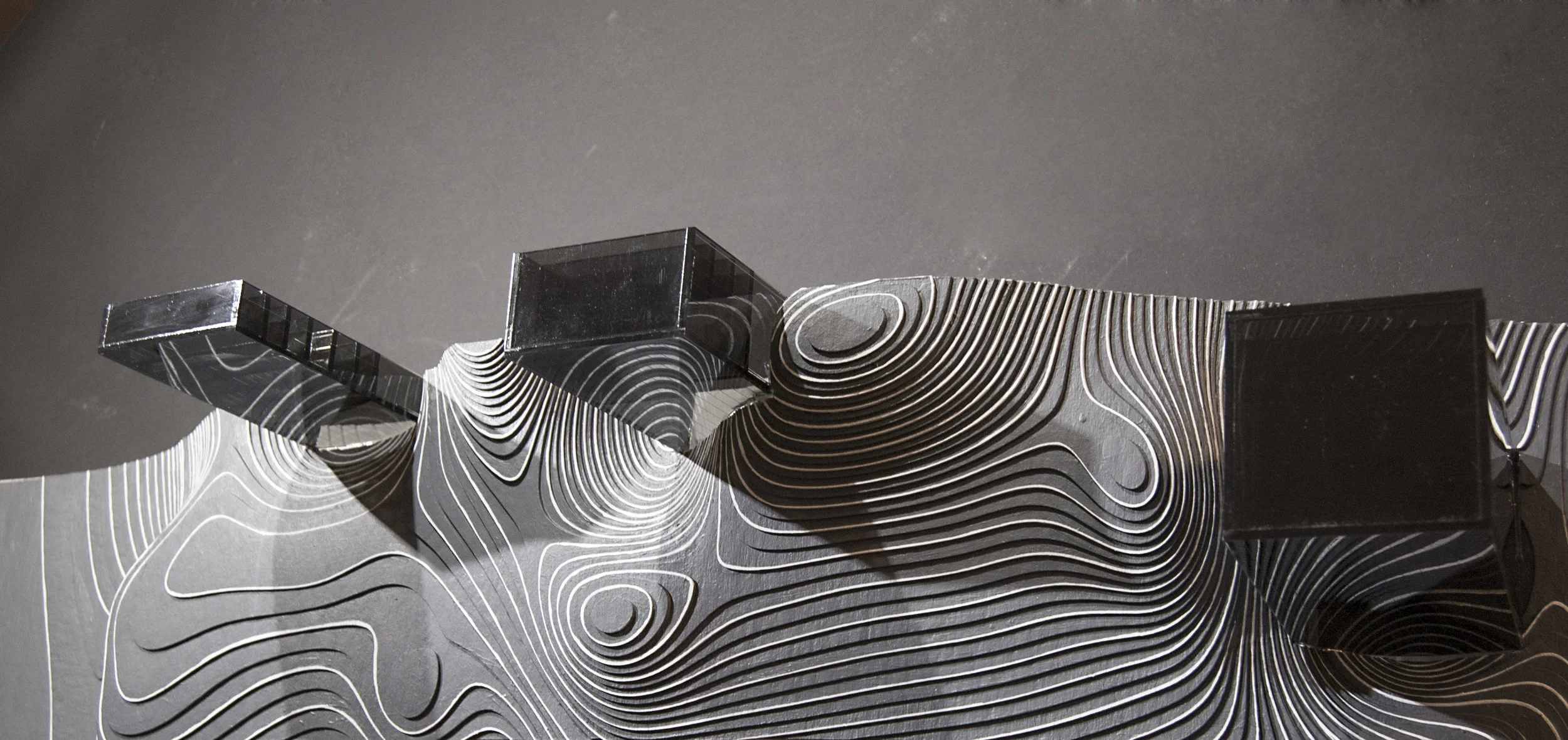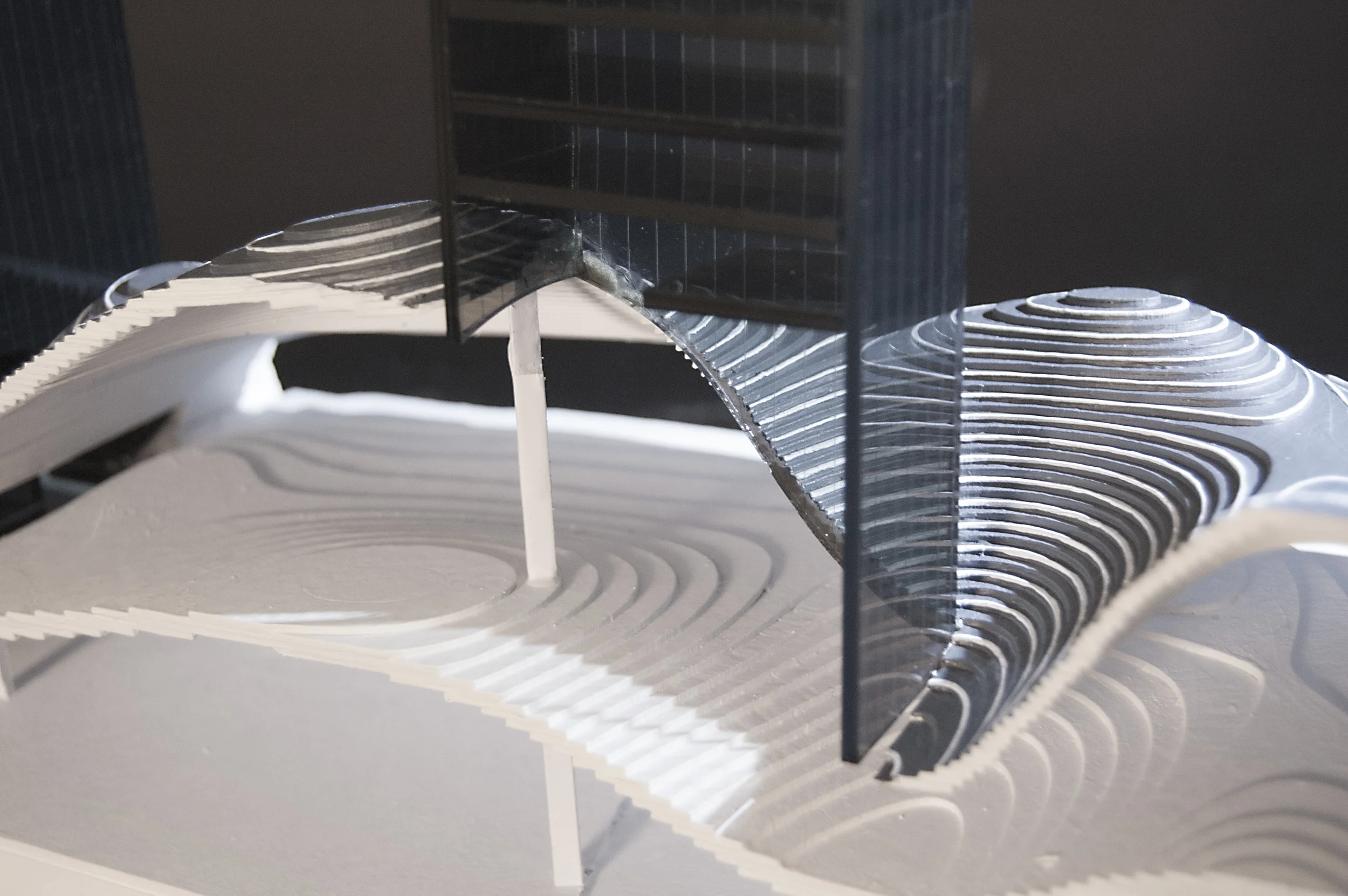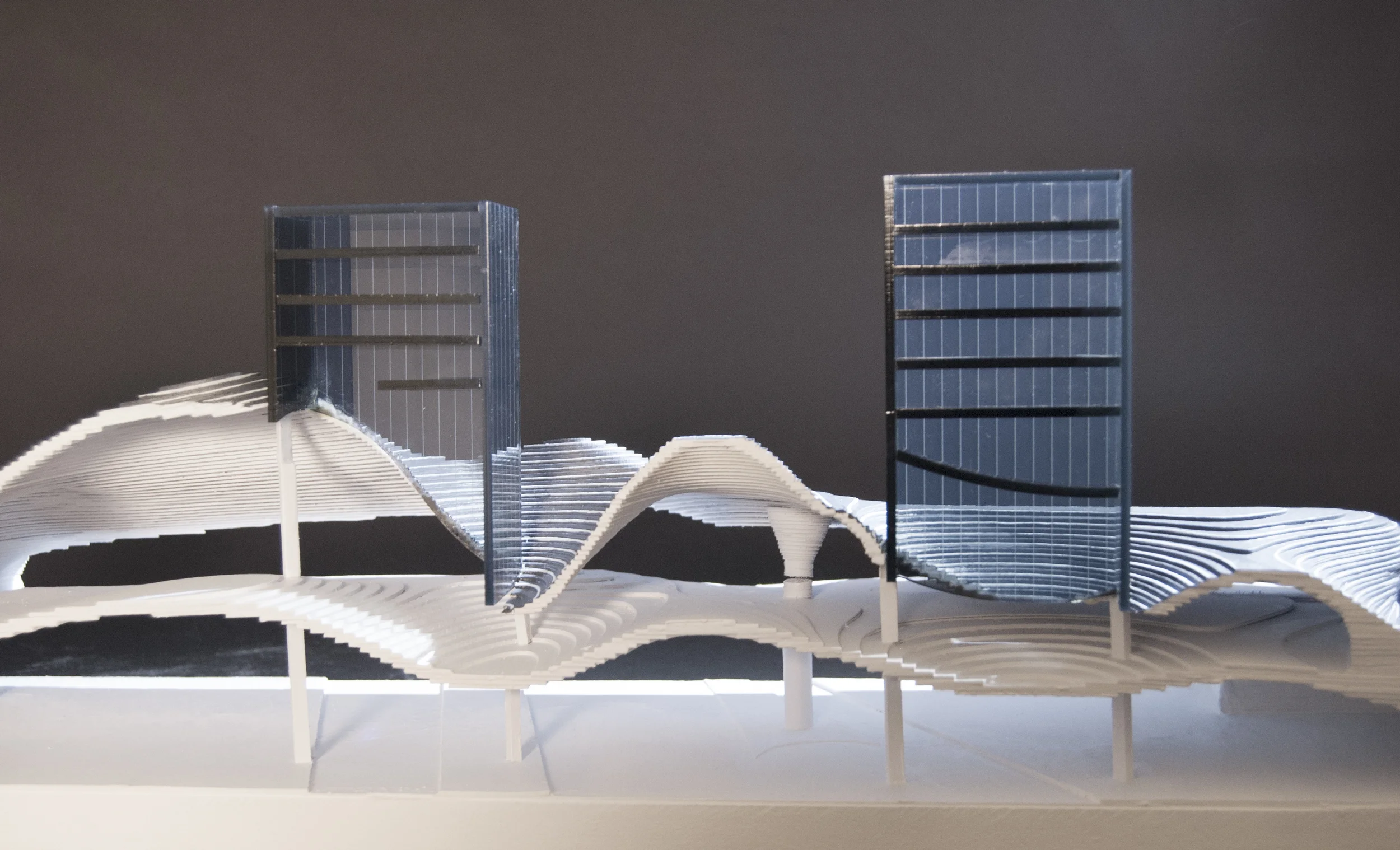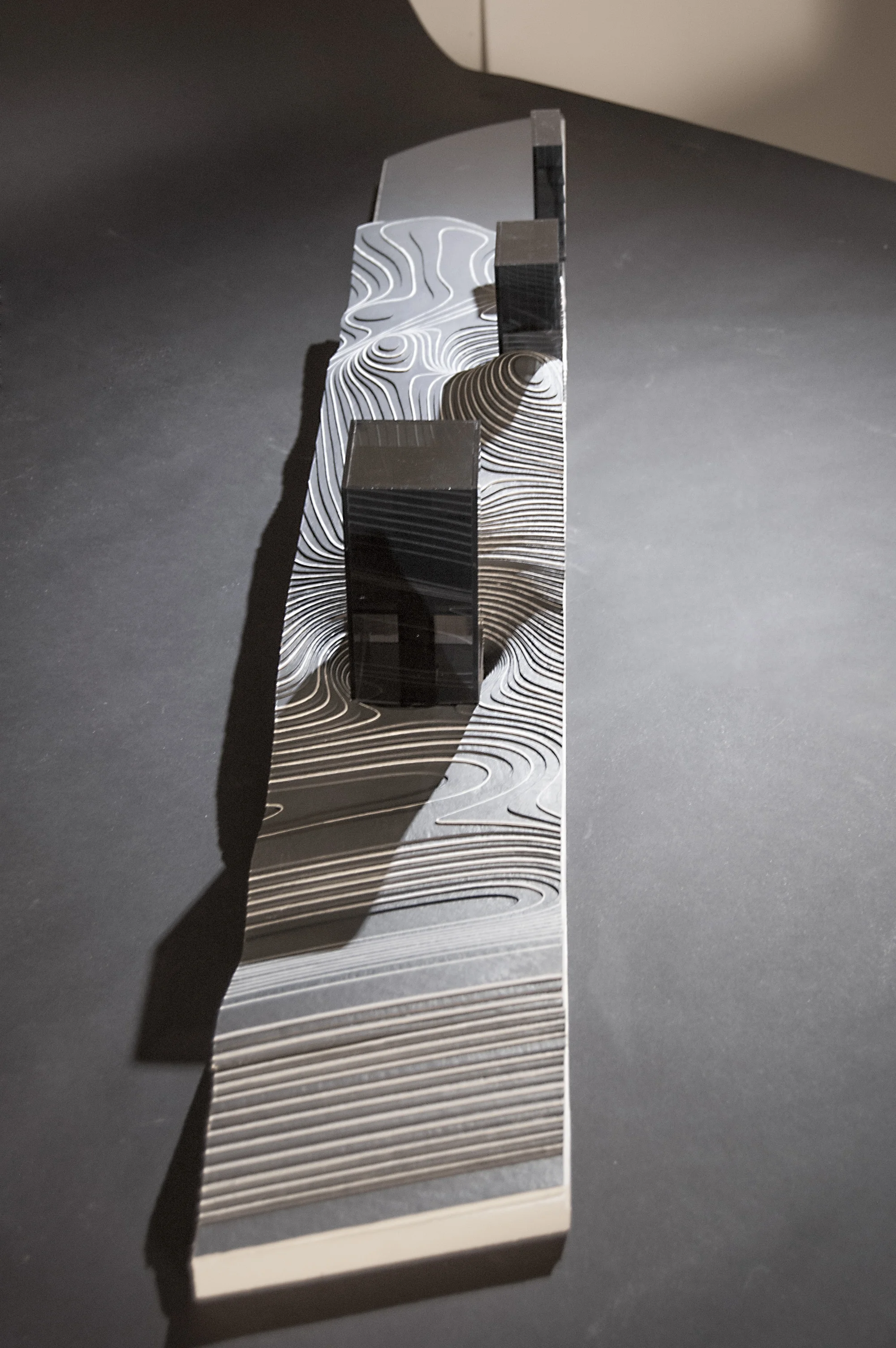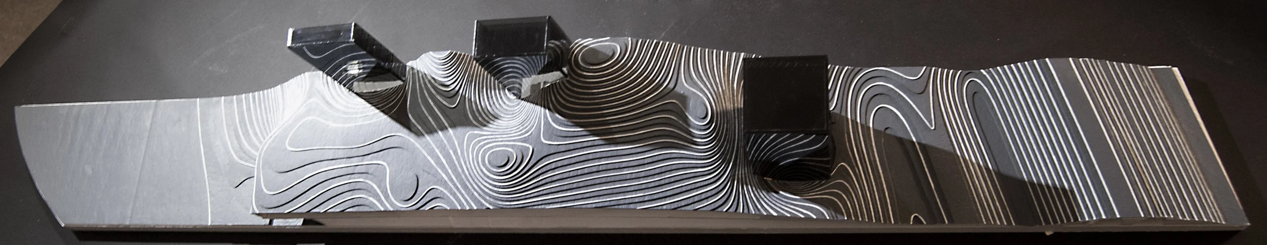 SECTIONAL MODEL -- a sectional "sliver" of the project is modeled to produce a representation of the project's interior volumetric qualities.